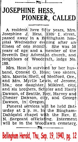 (From The Bellingham Herald, March 15, 1907)HESS, Josephine J. (d. 1940)