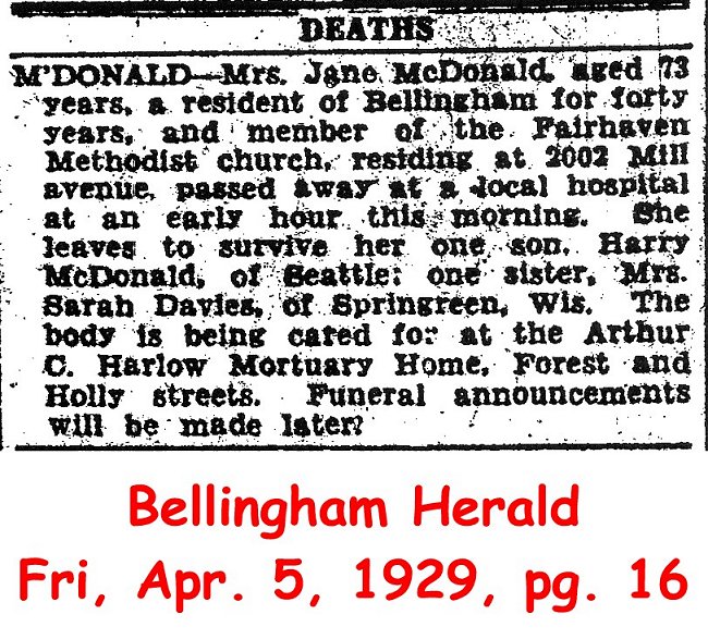 (From The Bellingham Herald, May 2, 1933) Submitted by Merrily Lawson.McDONALD, Melissa (d. 1929)