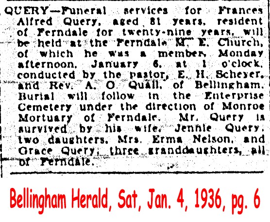 (From The Bellingham Herald, June 2, 1919) Submitted by site coordinator.QUERBACH, Everhard (d. 1907)