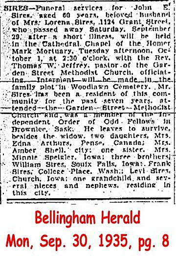 (From The Bellingham Herald, December 4, 1911) Submitted by site coordinator.SIRES, John E. (d. 1935)