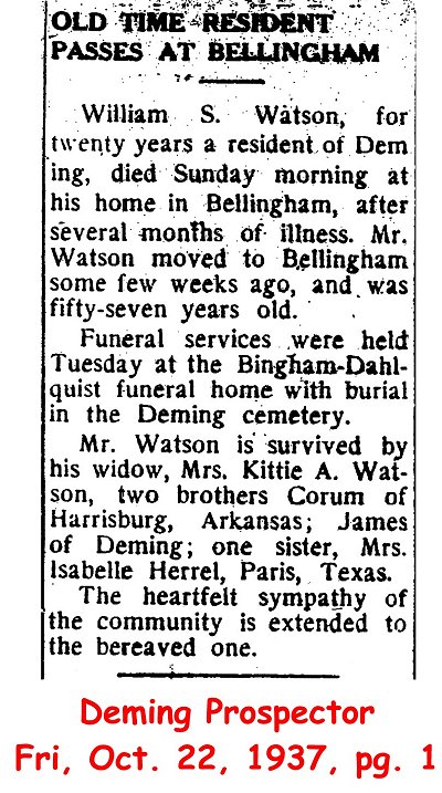 (From The Deming Prospector, March 20, 1931) Submitted by site coordinator.WATSON, William S. (d. 1937)