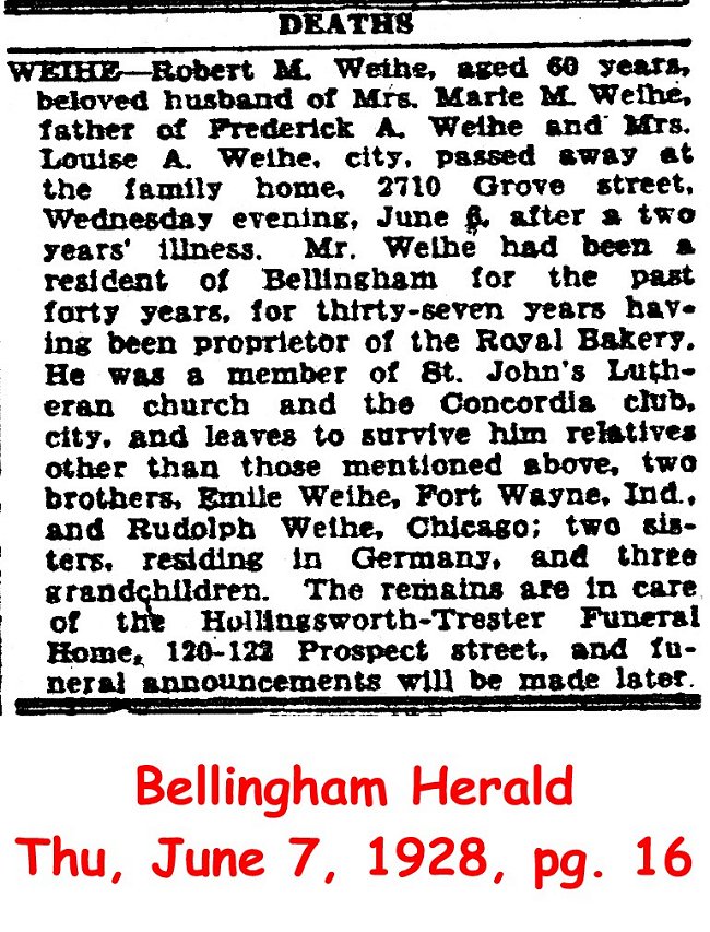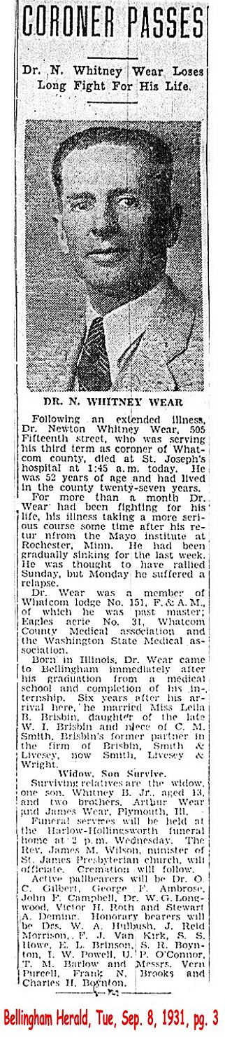 (From The Bellingham Herald, February 29, 1932) Submitted by site coordinator.WEAR, Newton W. (d. 1931)