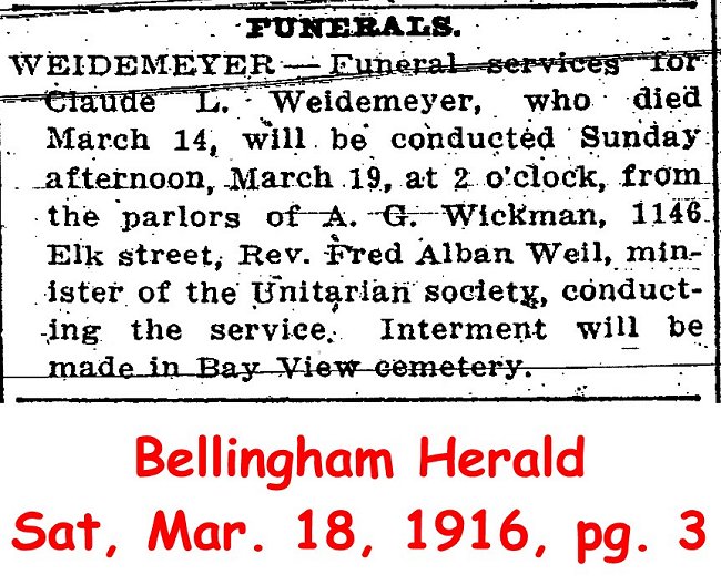 (From The Evening Herald, November 2, 1903) Submitted by site coordinator.WEIDEMEYER, Claude L. (d. 1916)