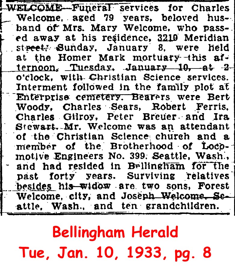 (From The Bellingham Herald, January 2, 1915) Submitted by site coordinator.WARD, Alverta (d. 1939)