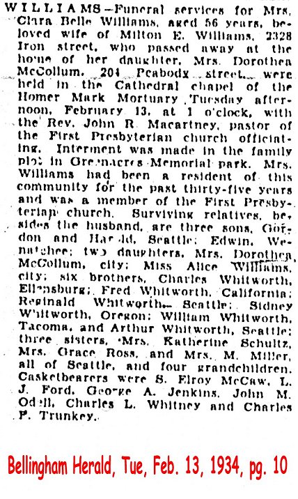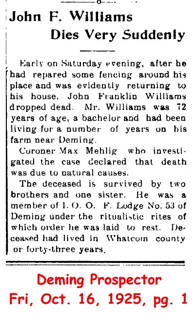 (From The Bellingham Herald, September 13, 1926) Submitted by site coordinator.WILLIAMS, John F. (d. 1925)