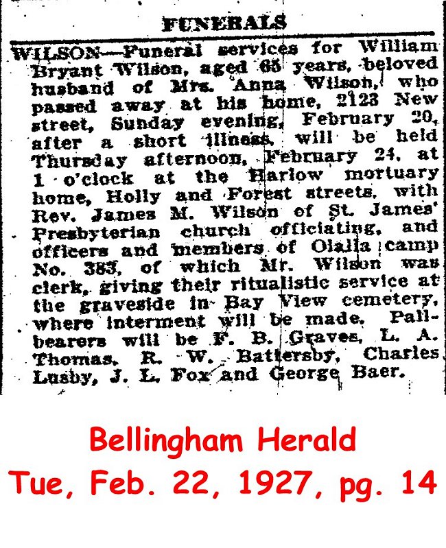 (From The Bellingham Herald, December 20, 1920) Submitted by site coordinator.WILSON, Maggie B. (d. 1895)