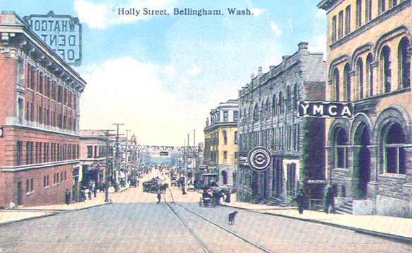 The small sign on the Y.M.C.A. building says "Real Estate". The Building on the left is the Henry Hotel, which later became the present Y.M.C.A.