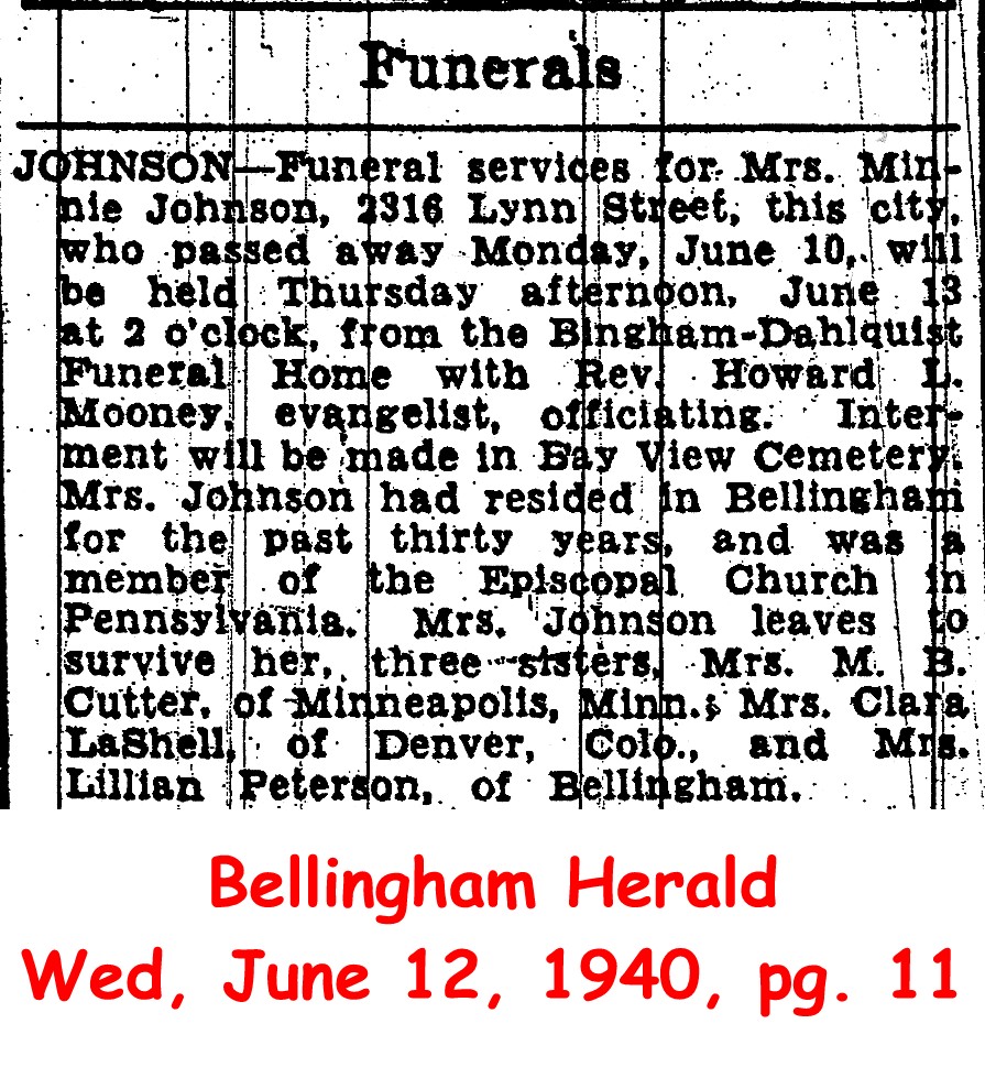 (From The Bellingham Herald, 5 Mar 1959) Submitted by Merrily Lawson.JOHNSON, Minnie - d. 1940 Image