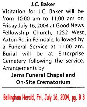 BAKER, J. C. -- b. 20 Feb 1933, d. 8 Jul 2004 Image (Note: Obit says bur. Enterprise but as of 31 Dec 2009 the burial had not taken place.)