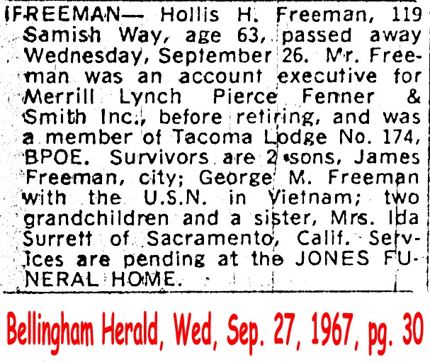 (From The Bellingham Herald, 10 Nov 2004) Submitted by Merrily Lawson.FREEMAN, Hollis H. d. 1967 Image