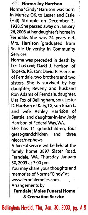 HARRISON, Norma Joy d. 26 Jan 2003 Image