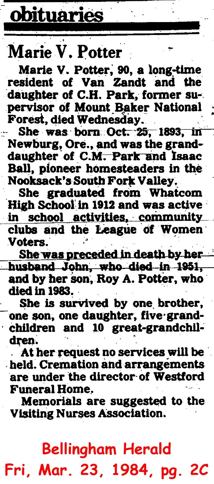 (From The Bellingham Herald, 8 Jan 1983) Submitted by Merrily Lawson.