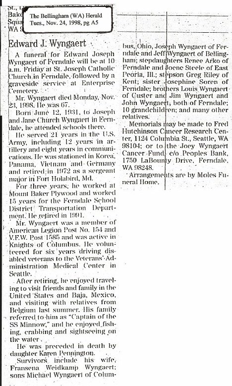 WYNGAERT, Edward J. d. 23 Nov 1998 Image