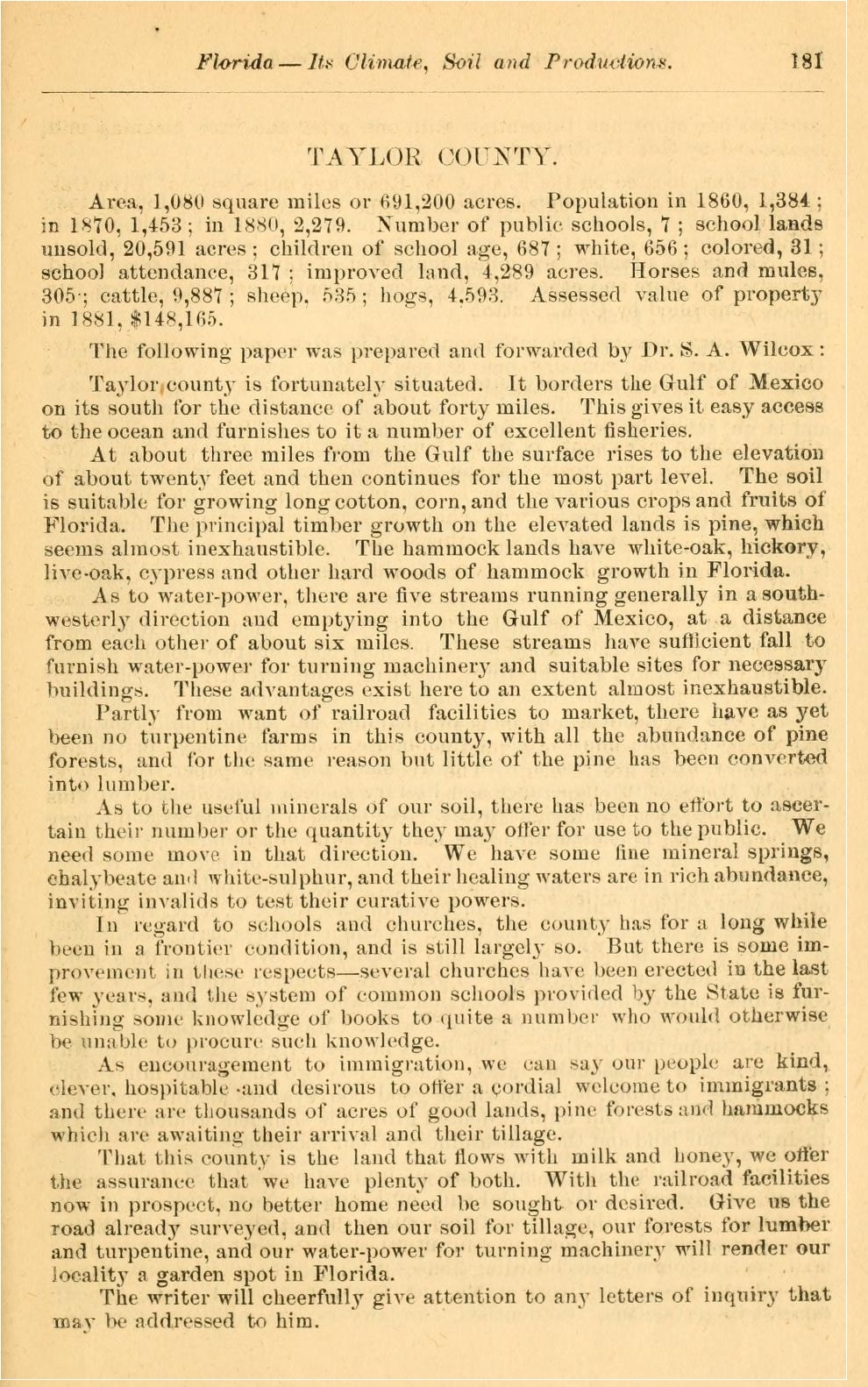 county is fortunately situated. It borders the Gulf of Mexico on its