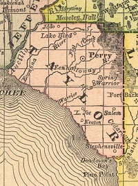 1888 Moseley Hall, Iddo, Lake Bird, Aucilla, Econfina River, Flat Creek, Perry, Fenholloway River, Spring Warrior, Warrior River, Fort Barker, Lake Joe, Salem, Keaton, Cedarville, Stephensville, Deadman's Bay, Steinhatche