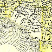 1882 Fort Hamilton, Talofa, West Hill, Stillepica, Mosely Hall, Ocilla River, Natural Bridge, Econfence River, Shady Grove, Rocky Creek, Finholloway, Charles Ferry, Perry, Fenholloway River, Warrior River, Salem, Steinhatche, Fort Buckeye, Steinhatchee River, Deadmans Bay, Fort Frank Brooke